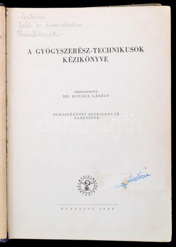 A gyógyszerész technikusok kézikönyve. Szerk.: Dr. Kovács László. Bp.,... https://www.darabanth.com/hu/350-Gyorsarveres/350.0/Konyvek/Konyvek-Termeszettudomany-medicina~41/A-gyogyszeresz-technikusok-kezikonyve-Szerk-Dr-Kovacs-Laszlo-Bp-1960-Medicina-Kiadoi~II1988687