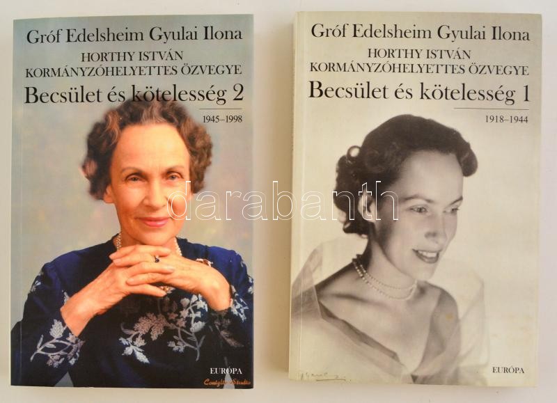 Edelsheim Gyulai Ilona Horthy István kormányzóhelyettes özvegye: Becsü... https://www.darabanth.com/hu/350-Gyorsarveres/350.0/Konyvek/Konyvek-Tortenelem~52/Edelsheim-Gyulai-Ilona-Horthy-Istvan-kormanyzohelyettes-ozvegye-Becsulet-es-kotelesseg-1-2~II1962103