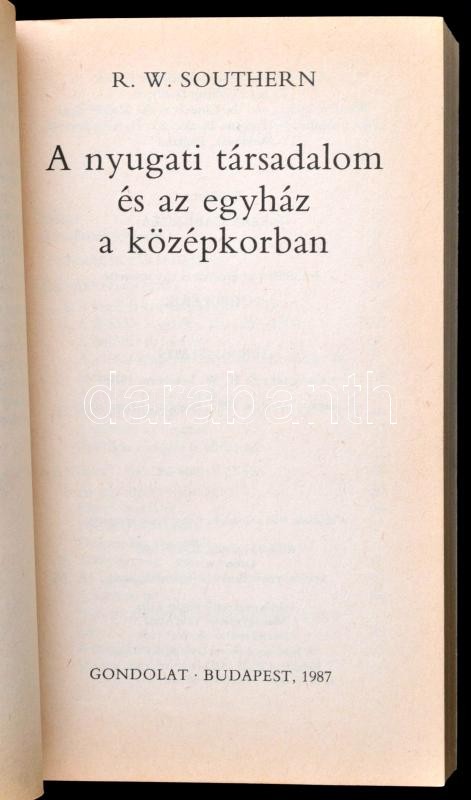 Leírás: R.W. Southern: A nyugati társadalom és az egyház a középkorban. Bp., 1987. Gondolat. Kiadói papírborítékban