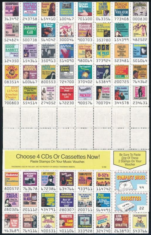 Leírás: 150 db levélzáró ívben, a közelmúlt híres énekeseivel és együtteseivel