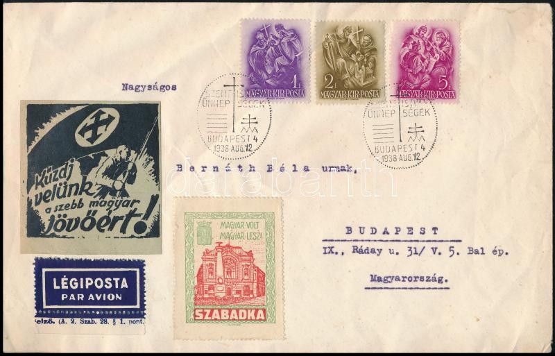 Leírás: 1938 Levél nyilas és irredenta levélzárókkal