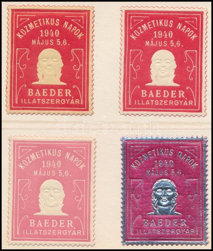 1940 Kozmetikus napok Baeder illatszergyár 4 db klf levélzáró https://www.darabanth.com/hu/350-Gyorsarveres/350.0/Magyar-filatelia-es-postatortenet/Parafilatelia~15/1940-Kozmetikus-napok-Baeder-illatszergyar-4-db-klf-levelzaro~II1990264