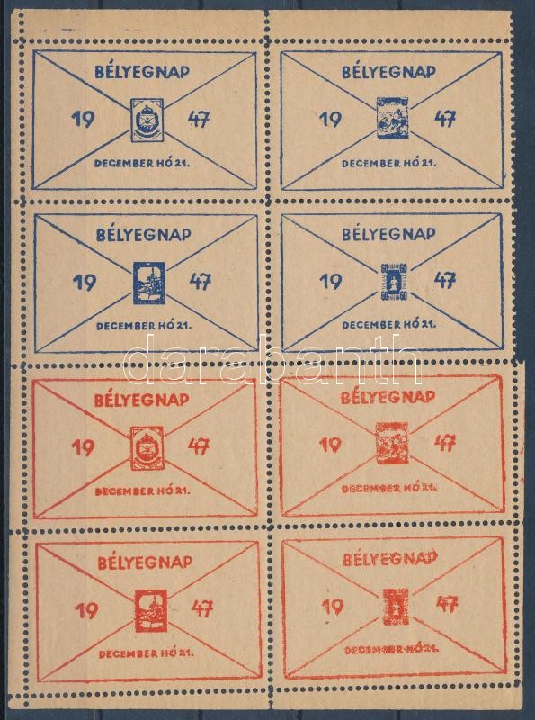 Leírás: 1947 Bélyegnap levélzáró emlékív (az ívszél részlegesen hiányzik)