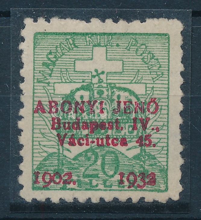 Leírás: Abonyi bélyegüzlet emlékiv 1 bélyege (Turul bélyegterv)