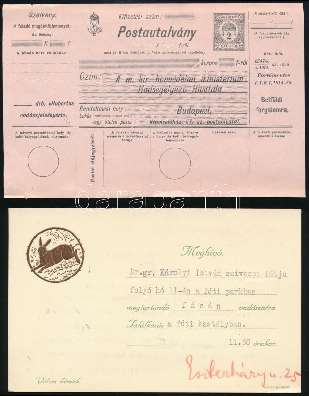 cca 1920 3 db vadász témájú nyomtatvány