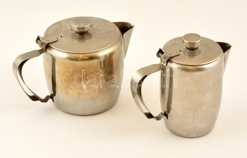 Leírás: 2 db fém kiöntő, jelzés nélkül, az egyik rozsdamentes acél, 12x11 cm, és 13x8 cm