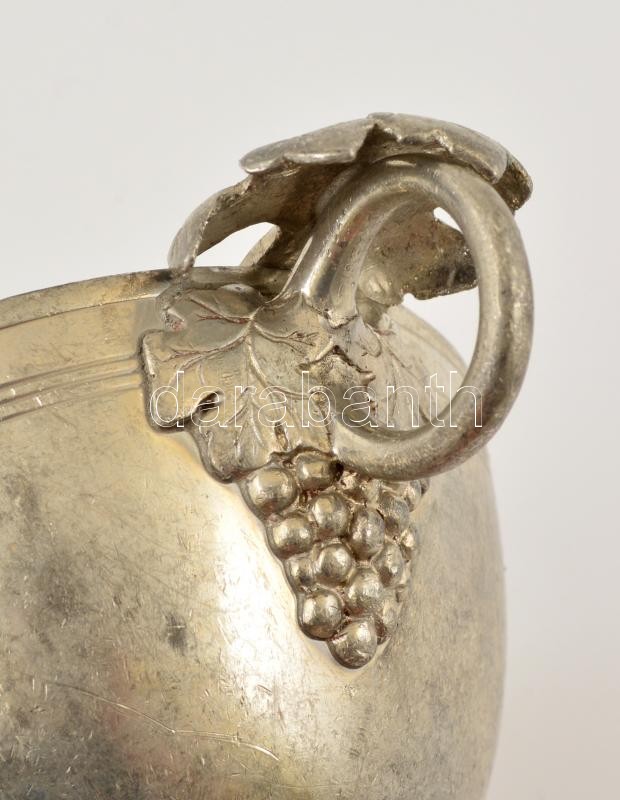 Leírás: Fém, szőlő motívumos bortölcsér, jelzett, 12x8 cm.