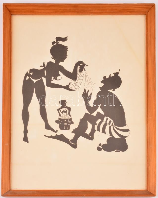 Leírás: Humoros árnykép nyomat, üvegezett keretben, 41×29 cm