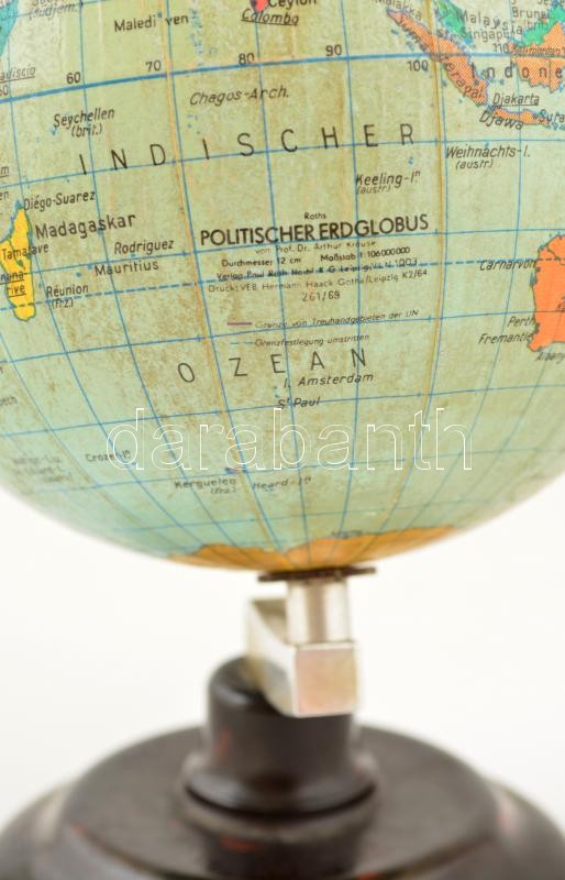 Leírás: Kisméretű földgömb, bakelit talapzaton, d: 13 cm, m: 20 cm
