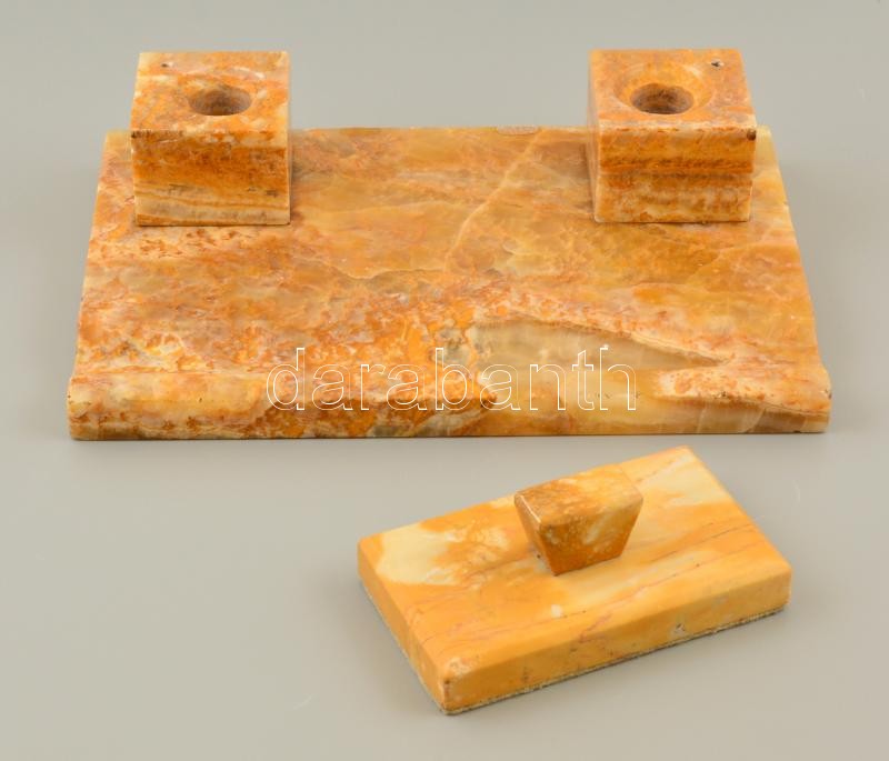 Leírás: Márvány íróasztali készlet, tapperrel, üveg nélküli tintatartóval. 23x34 cm