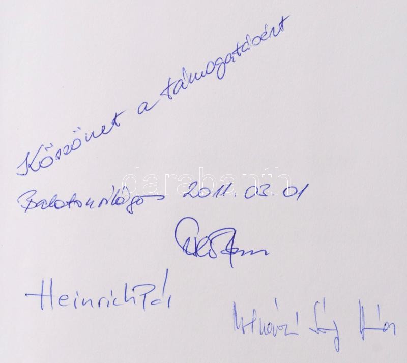 A szerzők, Heinrich Pál, Szita Róbert által dedikált. (Heinrich Pál, Szita Róbert, és egy harmadik személy ajándékozási soraival.)