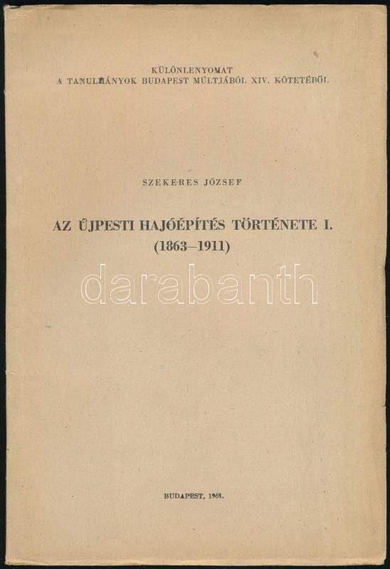 Szekeres József: Az újpesti hajóépítés története I-II. kötet. I. kötet. (1863-1911). II. kötet. (1912-1944.) Különlenyomat a Tanulmányok Budapest Multjából XIV-XV. kötetéből. Bp.,1963-1964, Akadémiai Kiadó. Az I. kötetben fekete-fehér fotókkal. Kiadói papírkötés.