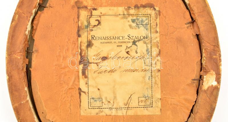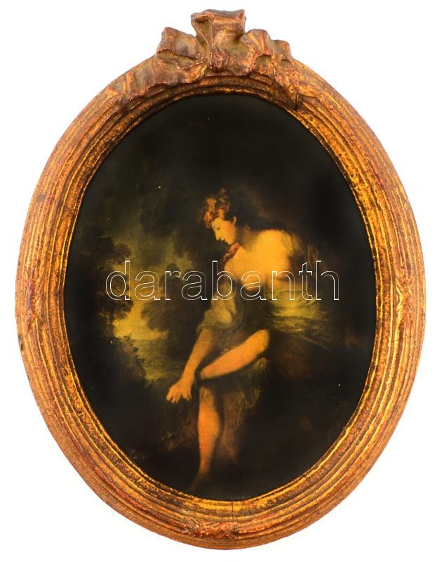 Leírás: Ovális fa képkeret, nyomattal, belső méret: 24×18 cm, külső méret: 32×23 cm