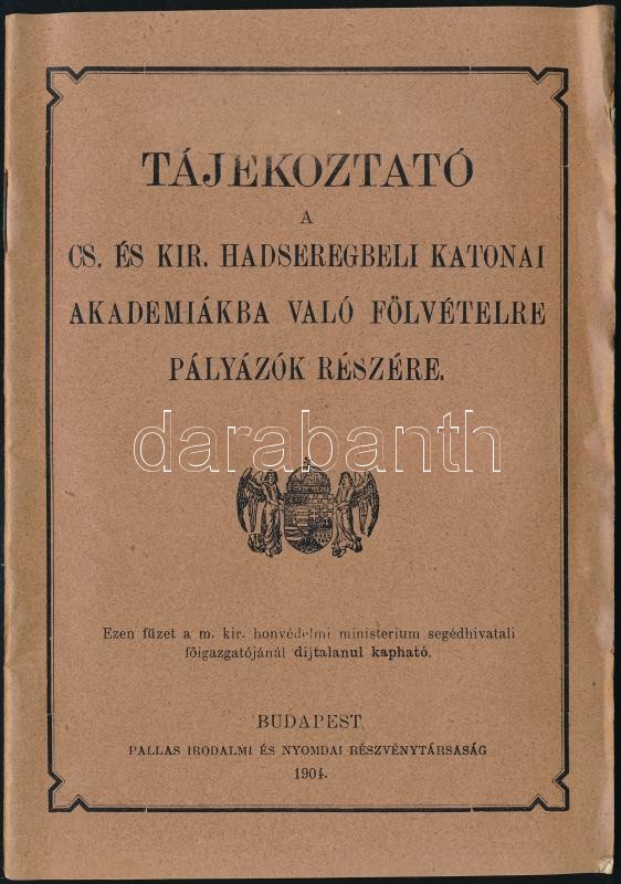 1904 Tájékoztató a cs. és kir. hadseregbeli katonai akadémiákba való f... https://www.darabanth.com/hu/350-Gyorsarveres/350.0/Mutargy-papirregiseg-egyeb/Militaria~29/1904-Tajekoztato-a-cs-es-kir-hadseregbeli-katonai-akademiakba-valo-folvetelre-palyazok~II1988159