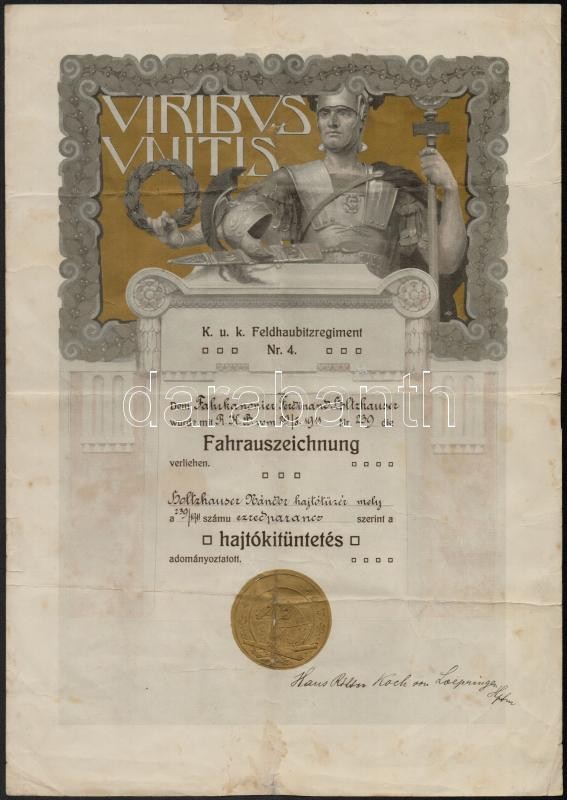 1911 Hajtókitüntetést adományozó oklevél, hajtótüzér számára https://www.darabanth.com/hu/350-Gyorsarveres/350.0/Mutargy-papirregiseg-egyeb/Militaria~29/1911-Hajtokituntetest-adomanyozo-oklevel-hajtotuzer-szamara~II1990116
