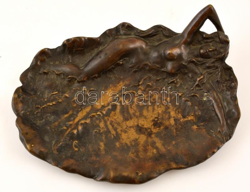 Leírás: Női lakos szecessziós réz tál jelzés nélkül, 32×22 cm