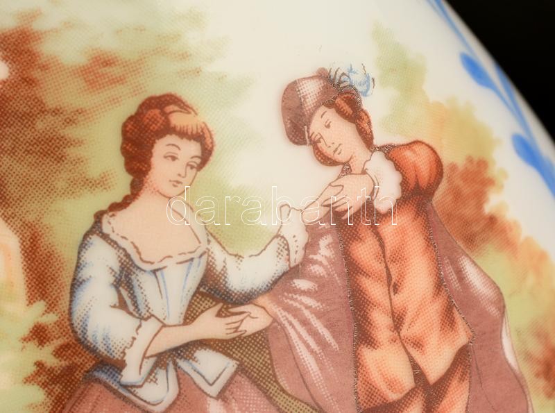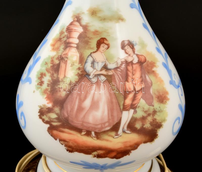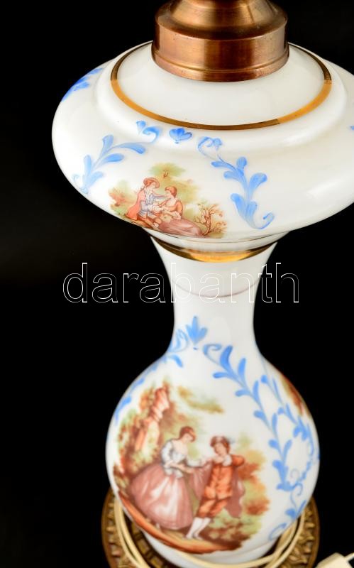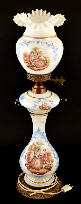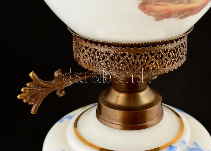Leírás: cca 1900 Részben kézzel festett petróleumlámpa, utólag bekötve, réz szerelékekkel, jó állapotban, m:72 xm