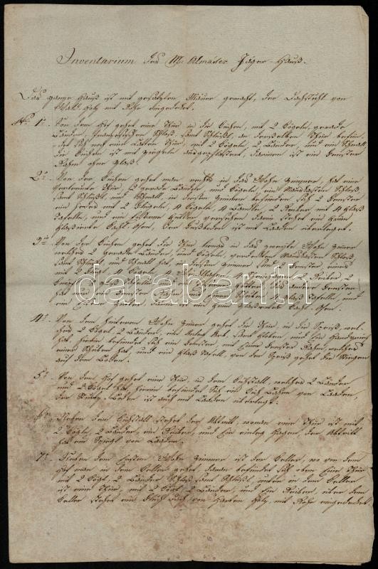 Leírás: 1796 A magyaralmási Esterházy birtok egy rászánek inventáriuma 2 beírt oldalon 26x42 cm