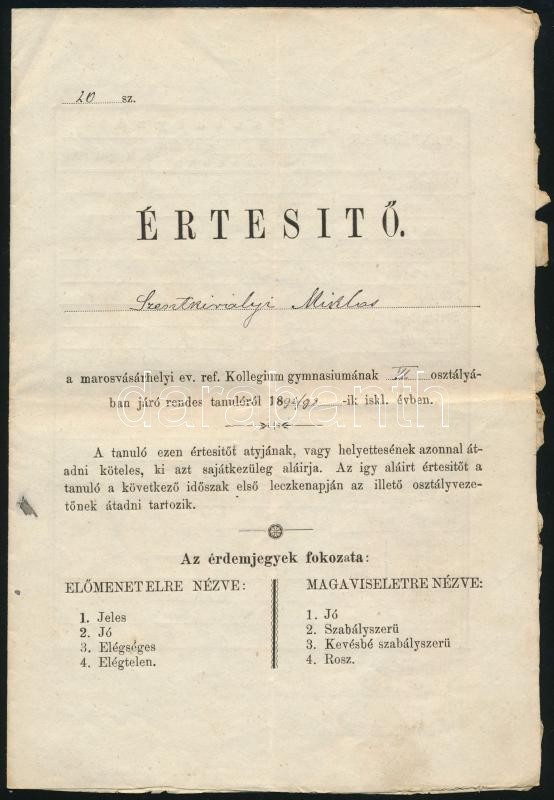 1893 Értesítő a marosvásárhelyi ev. ref. kollégium gimnáziumának értes... https://www.darabanth.com/hu/350-Gyorsarveres/350.0/Mutargy-papirregiseg-egyeb/Okmanyok~17/1893-Ertesito-a-marosvasarhelyi-ev-ref-kollegium-gimnaziumanak-ertesitoje~II1969922