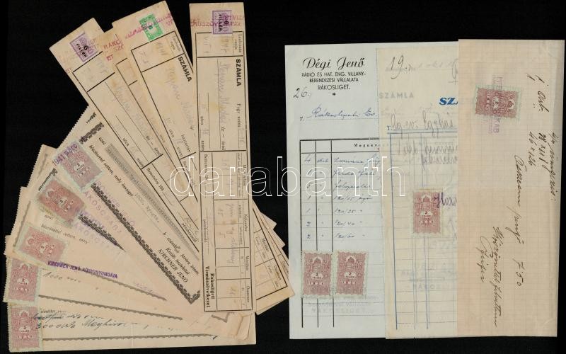 Leírás: 1939-1949 Vegyes számla tétel,20 db, rajtuk számlailleték bélyegekkel.
