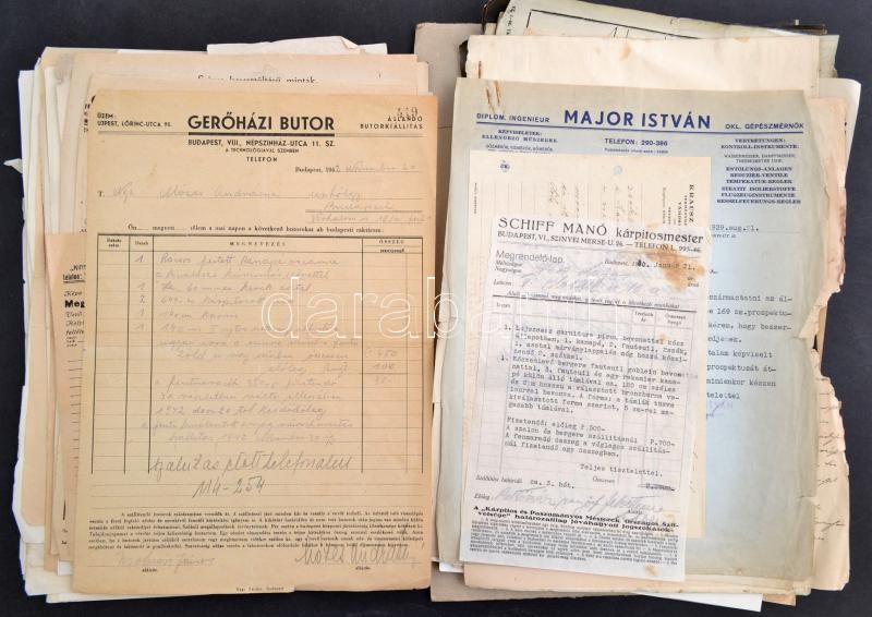 Leírás: Kb. 100 db régi nyomtatvány, számla, dokumentum, levél, nyugta, stb.