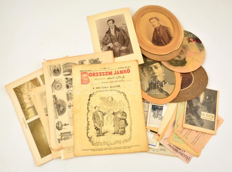 Leírás: cca 1920-1940 Vegyes papírrégiség tétel (Borsszem Jankó, megrendelőlapok, borítékok, levelezőlapok, stb.)