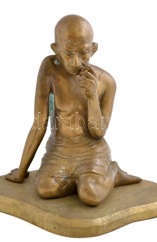 Leírás: Jelzés nélkül: Gandhi. Öntött bronz, talapzattal, m:16 cm