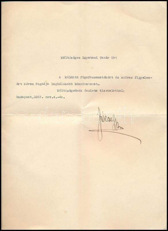 1933 Bp., József főherceg saját kezű aláírása gépelt köszönőlevélen https://www.darabanth.com/hu/350-Gyorsarveres/350.0/Mutargy-papirregiseg-egyeb/Tortenelmi-dokumentumok-keziratok-erdekessegek~18/1933-Bp-Jozsef-foherceg-sajat-kezu-alairasa-gepelt-koszonolevelen~II1991205