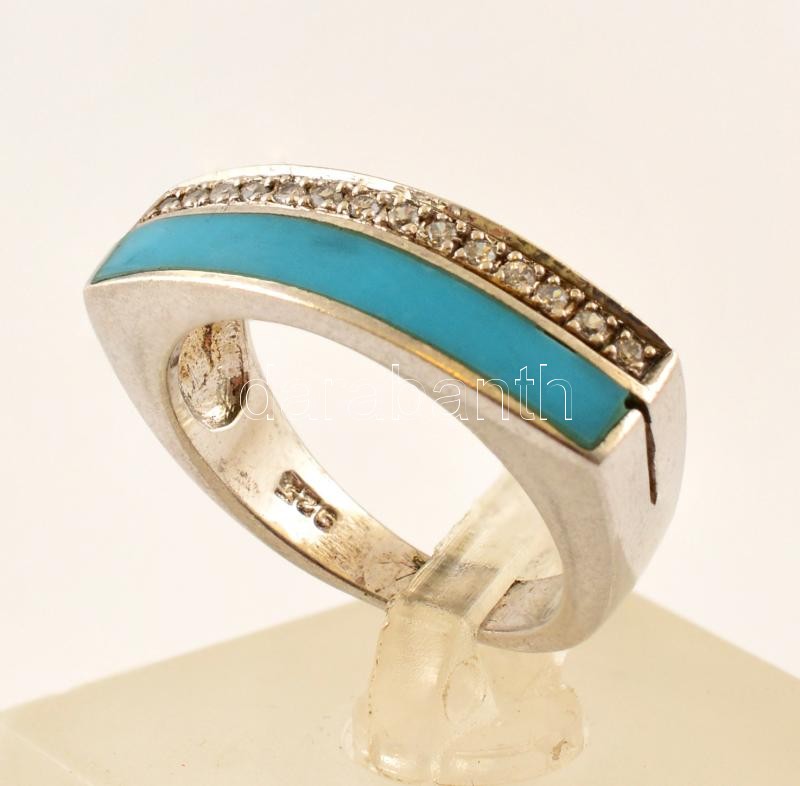 Leírás: Ezüst(Ag) apró kövekkel és zománccal díszített gyűrű, jelzett, méret: 53, bruttó: 5,4 g