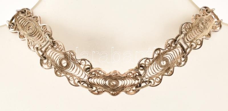 Leírás: Ezüst(Ag) filigrán karkötő, jelzett, új kapoccsal, h: 16 cm, nettó: 8,9 g