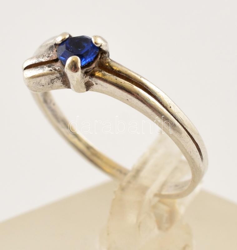 Leírás: Ezüst(Ag) gyűrű, kék kővel, jelzett, méret: 53, bruttó:1,5 g