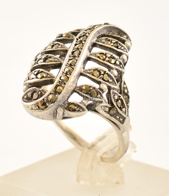 Leírás: Ezüst(Ag) gyűrű, markazit díszítéssel, jelzett, méret: 58, bruttó: 6,8 g
