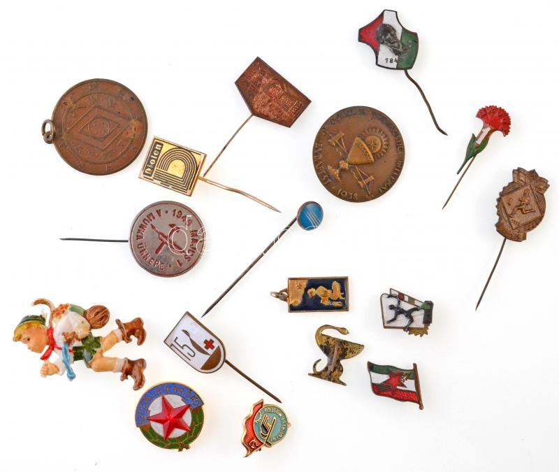 Leírás: 17db-os vegyes jelvény és kitűző tétel, közte "Május 1.", "Kilián" T:2