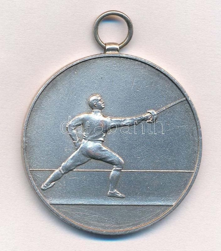 Leírás: 1944. "Castelli Béla emlékverseny - legjobb vívó" ezüstözött Br díjérem füllel (26,48g/40mm) T:1-