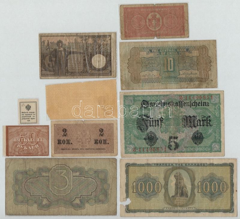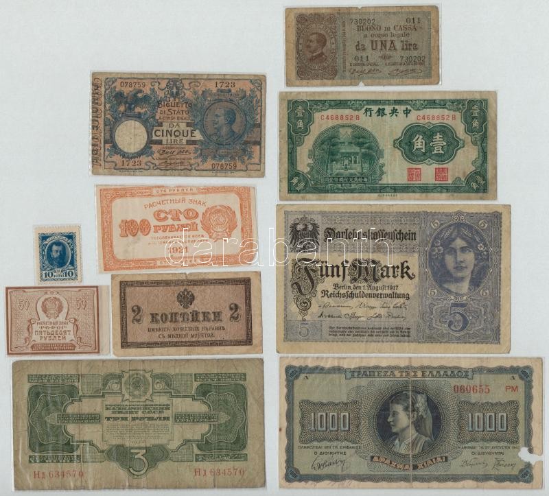 10pcs of various interesting banknotes, including Italy, Soviet Union, several in sealed foil packing C:F,VG