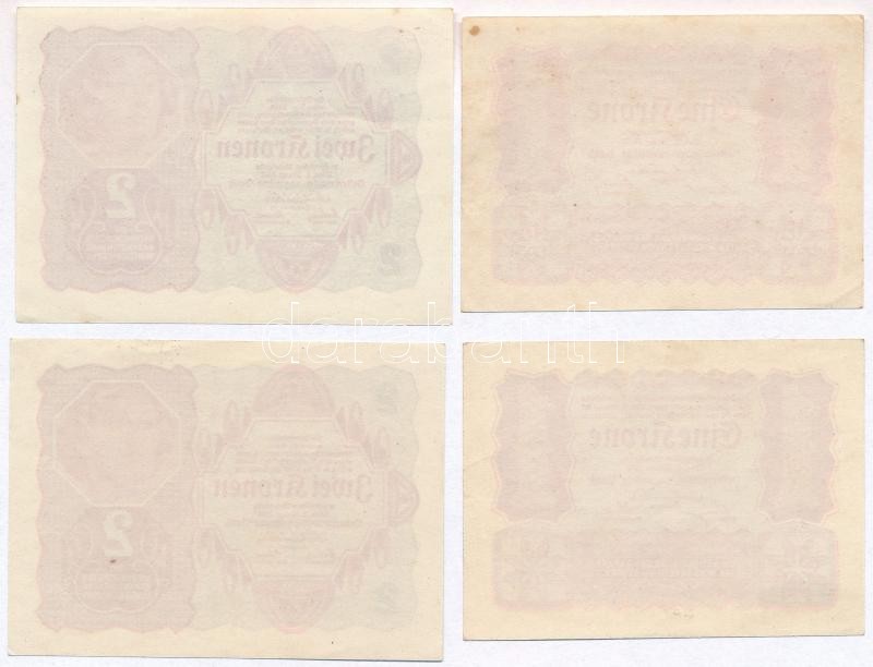 Austria 1922. 1 Krone (2x) + 2 ... https://www.darabanth.com/hu/350-Gyorsarveres/350.0/Numizmatika/Kulfoldi-bankjegyek~2500073/Ausztria-1922-1K-2x-plus-2K-2x-TI--Austria-1922-1-Krone-2x-plus-2-Kronen-2x-CAU~II1987752