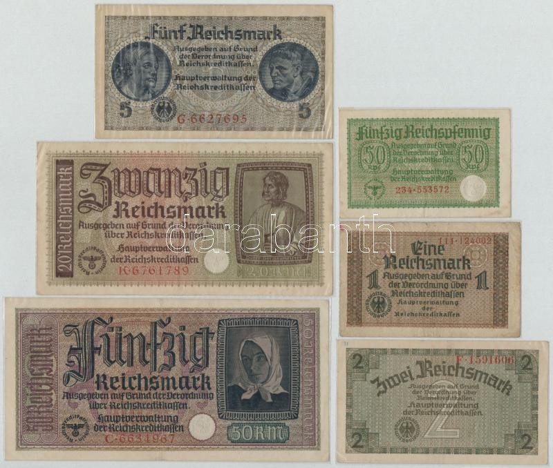 Német Harmadik Birodalom / Német megszállt területek 1940-1945. 50pf + 1M + 2M + 5M + 20M + 50M mindegyik lezárt fóliában T:III kis ly.