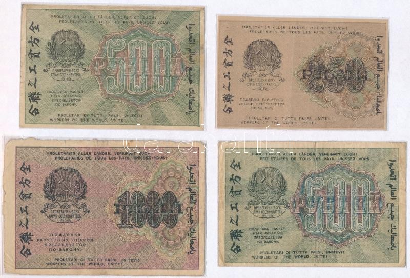 Leírás: Szocialista Szövetségi Szovjet Köztársaság 1919. 250 Rubles + 500 Rubles (2x) + 1000 Rubles mind lezárt fóliában T:III,III-