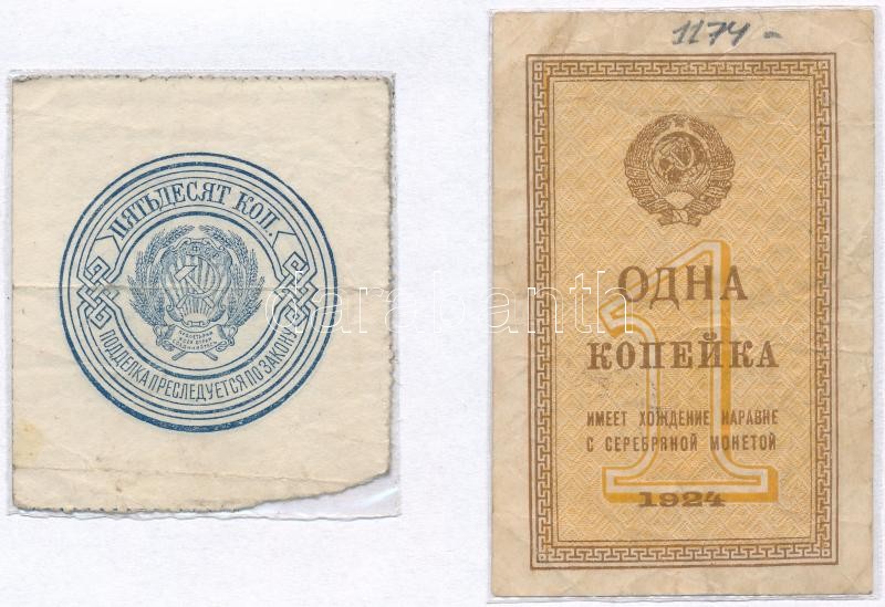 Szocialista Szövetségi Szovjet Köztársaság 1923. 50k + Szovjetunió 1924. 1R mindkettő lezárt fóliában T:III kis sarokhiány