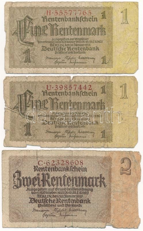 Mix: Germany / Weimar Republic 1929. 10 Mark (2x) + German Third Reich 1937. 1 Mark (2x) + 1937. 2 Mark + Románia 1966. 10 Lei C:F,VG
