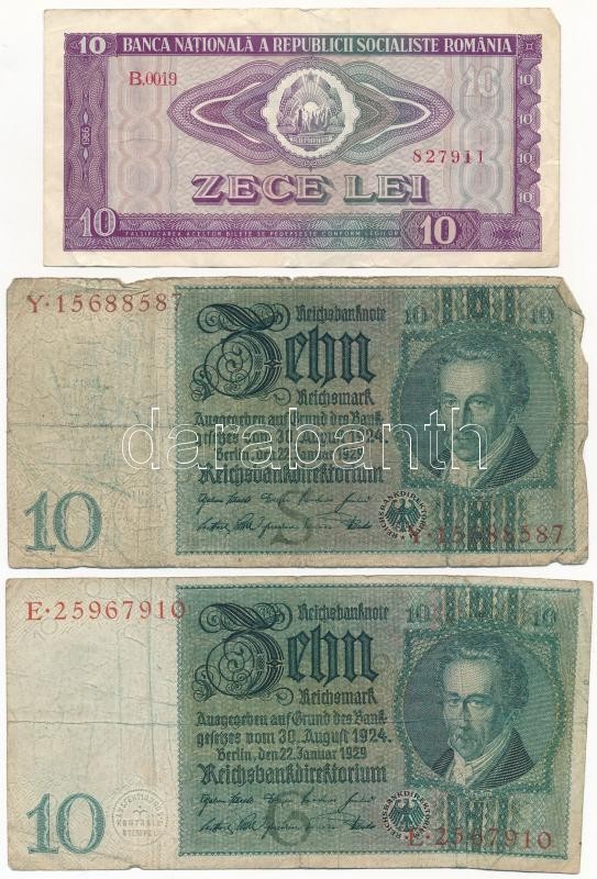 Vegyes: Németország / Weimari Köztársaság 1929. 10M (2x) + Német Harmadik Birodalom 1937. 1M (2x) + 1937. 2M + Románia 1966. 10L T:III,III-