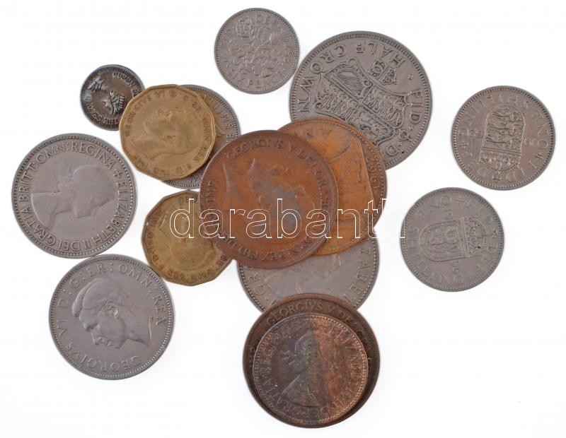 Leírás: 15db-os vegyes angol fémpénz tétel, közte 1db hamis T:2,2-