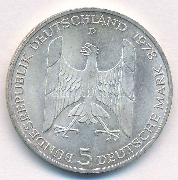NSZK 1978D 5M Ag "Gustav Stresemann születésének 100. évfordulója" T:1- FRG 1978D 5 Mark Ag "100th Anniversary - Birth of Gustav Stresemann" C:AU Krause KM#147