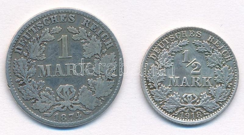 Német Birodalom 1874D 1M Ag + 1918A 1/2M Ag T:2-,2