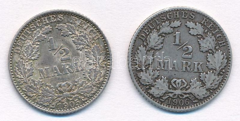 Német Birodalom 1905D 1/2M Ag + 1906D 1/2M Ag T:1-,2-