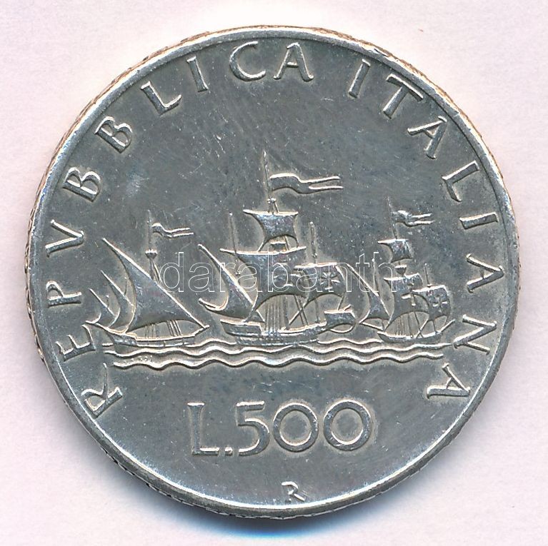 Italy 1965R... https://www.darabanth.com/hu/350-Gyorsarveres/350.0/Numizmatika/Kulfoldi-fem-es-ezustpenzek~1000014/Olaszorszag-1965R-500L-Ag-Kolumbusz-hajoi-T2-Italy-1965R-500-Lire-Ag-Columbus-Ships-CXF-K~II1937822