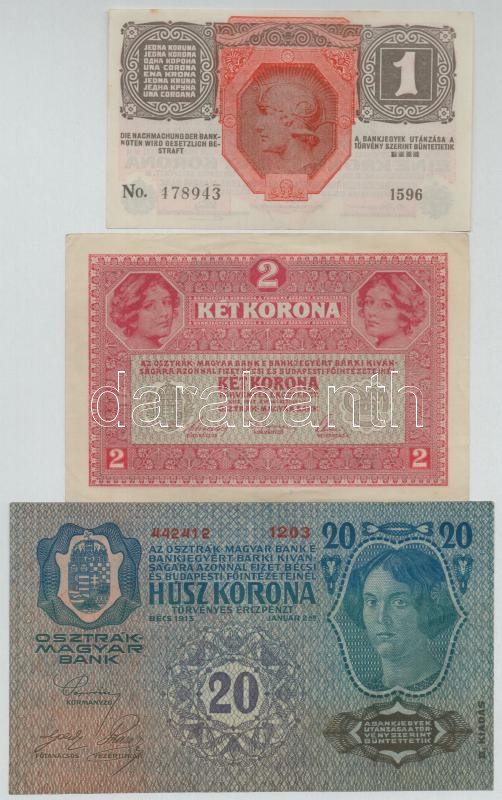 Leírás: 1902-1917. 5db klf magyar korona bankjegy T:I-,III,III-