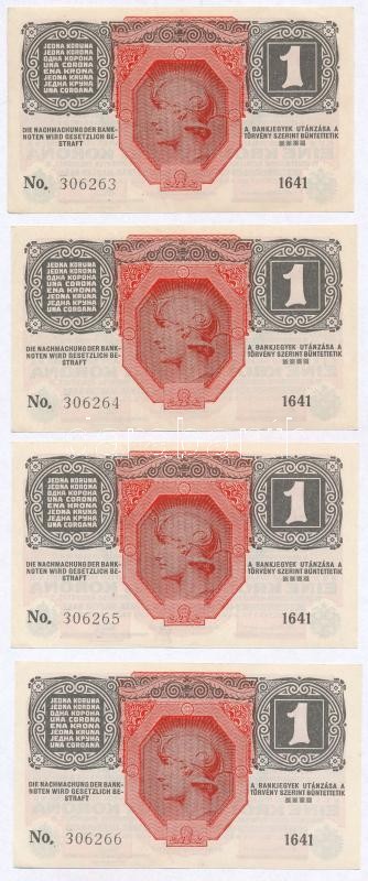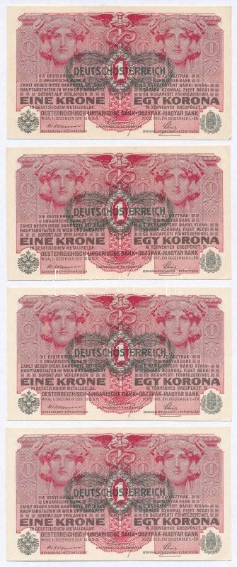 Leírás: 1916. 1K (4x) sorszámkövetők, mind "DEUTSCHÖSTERREICH" felülbélyegzéssel T:I,I-