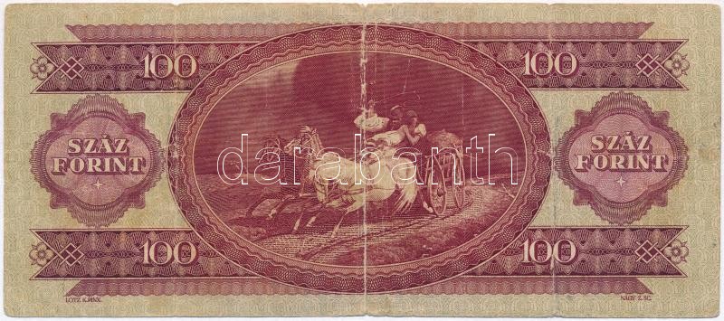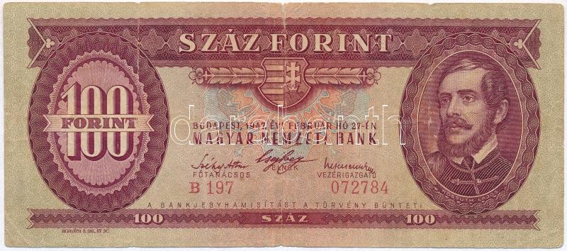 Leírás: 1947. 100Ft "B197" T:III- hajtás mentén szakadás