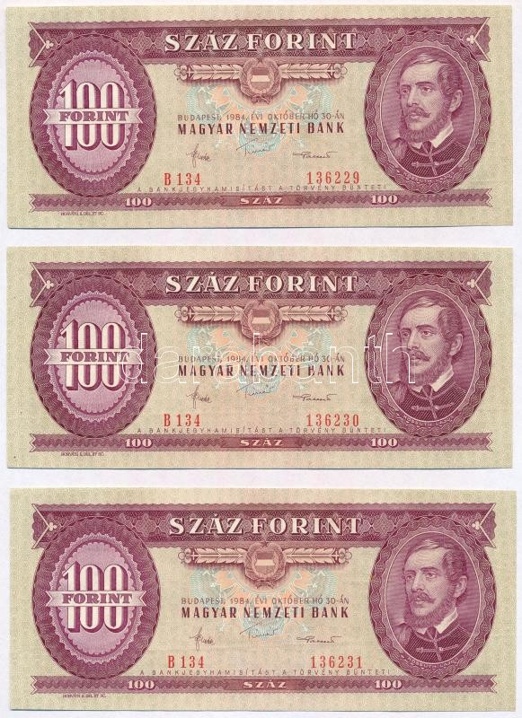 1984. 100Ft (3x) sorszámkövetők T:I-